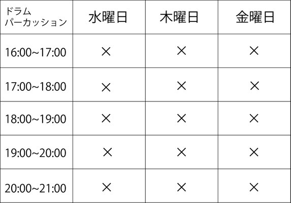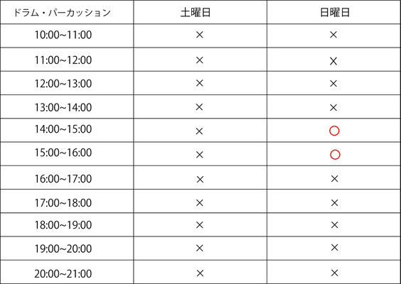 ドラムコースは日曜日14時〜、15時〜空きが出ました。体験レッスン受付中です。
