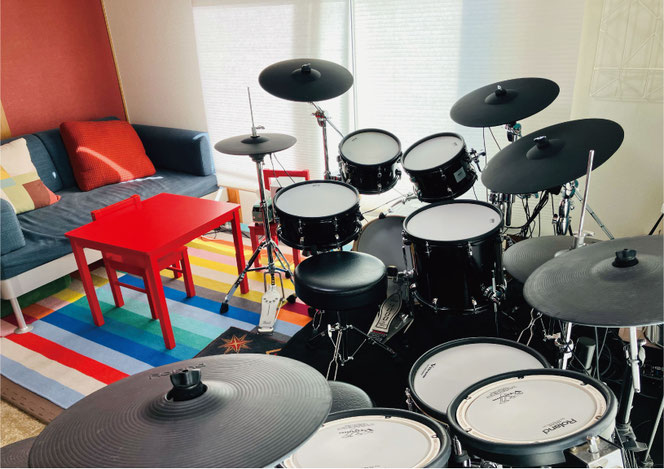 レッスンでは、成長段階のお子様の、耳の保護の為、電子ドラムを使用して技術向上を目指しますがドラム基礎技術向上は、電子ドラムでも問題はありません。(発表会や各種イベントでは生ドラムを使用します。)クラシックを基盤とした基礎練習も取り入れています。